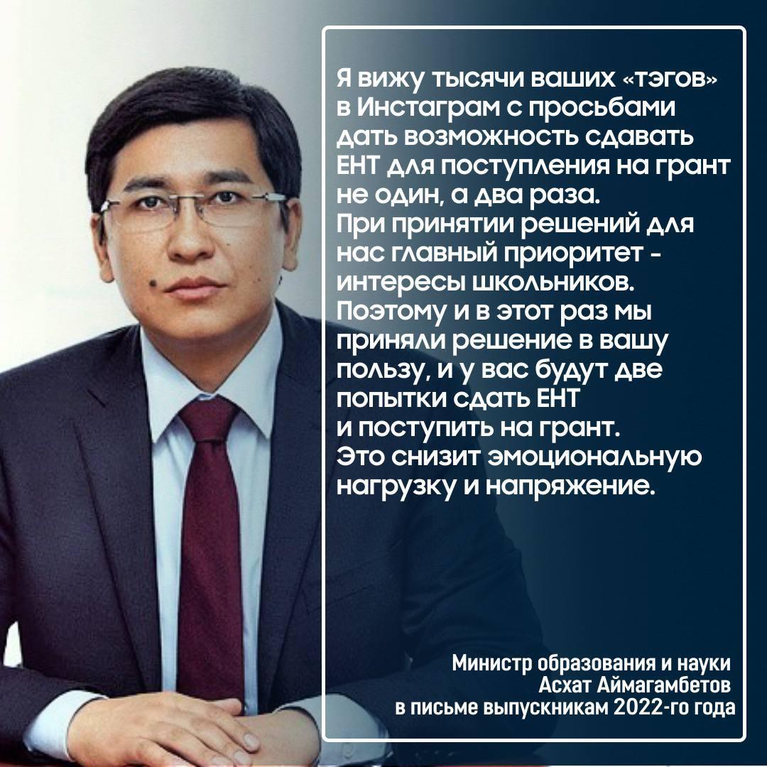02 апрель 2022 0 1 2 3 4 5 Білім және ғылым министрі Асхат Аймағамбетов Білім және ғылым министрі Асхат Аймағамбетовтің 2022-жылдың түлектеріне жазған хатынан.