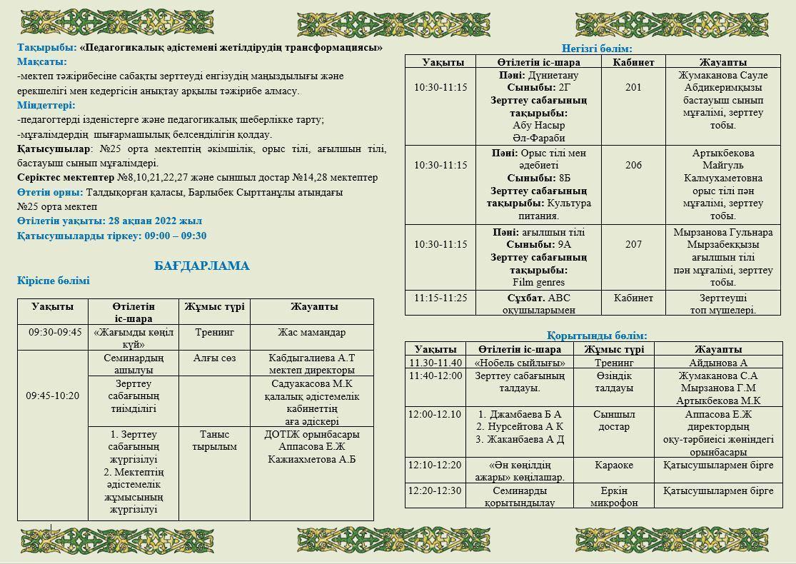 Қалалық семинар » Жетісу облысы Талдықорған қаласы №25 орта мектеп
