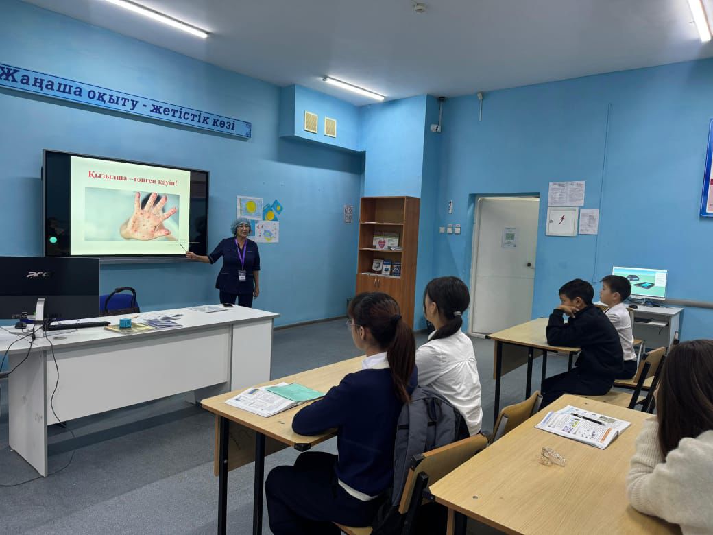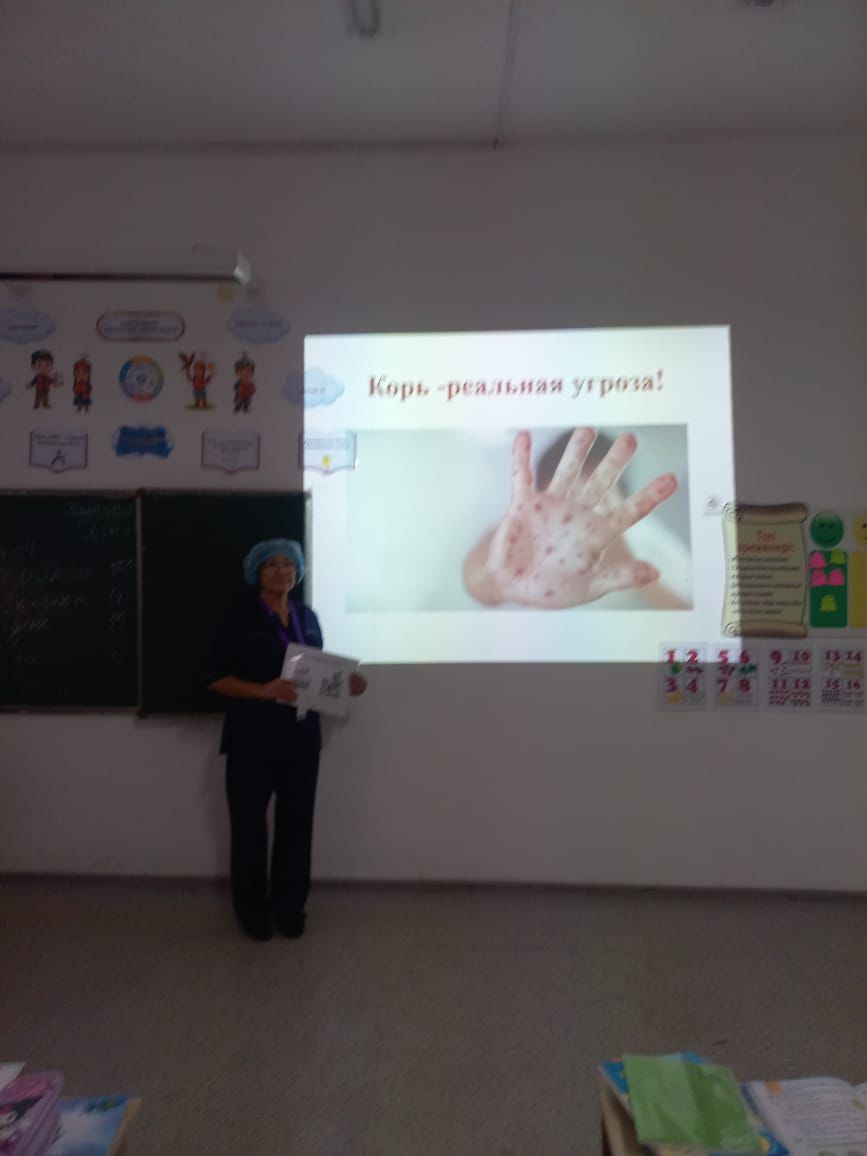 Оқушыларға екпенің маңызы өте зор екені түсіндірілд. 1-2 сыныптарда қызылша ауруы туралы әңгіме- сұхбат өткізілді. 3-4 сыныптарда сынып сағаттары өткізілді. 5-8 сыныптарда қызылша ауруы туралы түсіндіріліп, слайдтар көрсетілді. Оқу кабинеттерінде күнделікті жеделдету, дымқыл тазалау жұмыстары жүргізіледі.