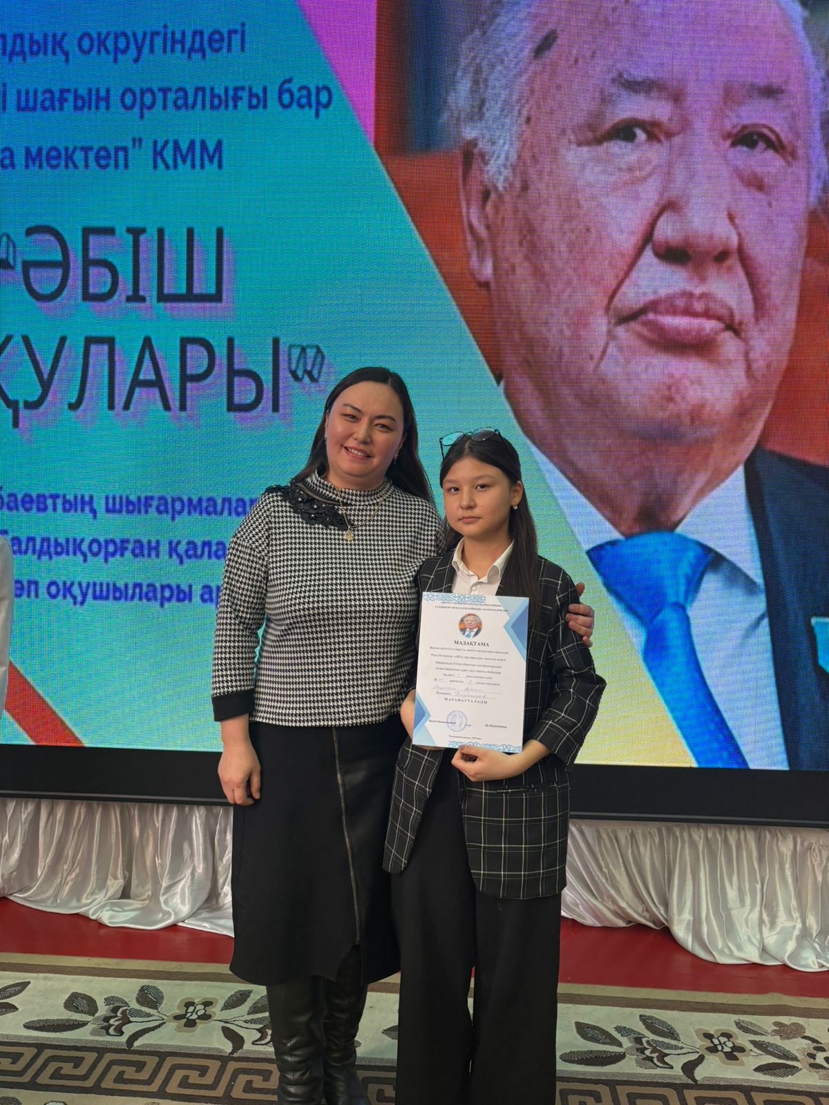байқауында Ә.Кекілбаевтың шығармалары бойынша зерделеу жоба байқауы бағыты бойынша жүлделі _1_ орын алғаны үшін №25 мектептің 9 сынып оқушысы Дүйсенбек Алихан, 10 сынып оқушысы Сейтжапар Айша