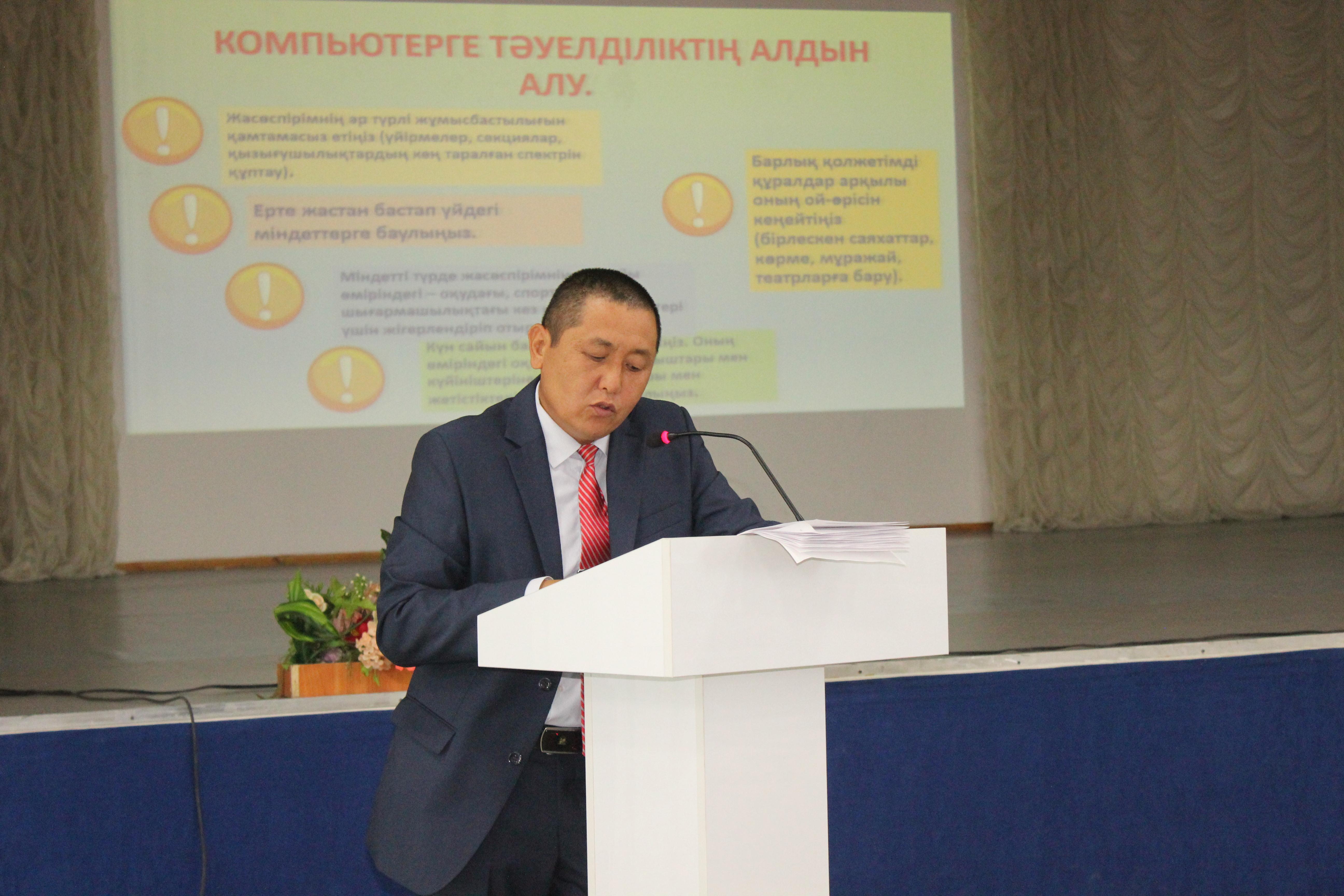 Тындалды: Мектеп психологі Н. Ибраймджанов. Конференцияға ұсынылған 71 слайдпен және 7 видеороликпен қатысқан ата – аналарға таныстырып, бала тәрбиесіндегі бағыт бағдарларға кеңес берді.